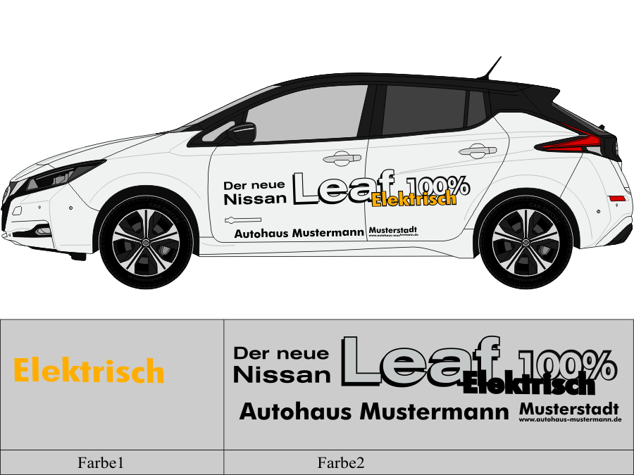 • Bei der Verwendung von einem eigenen Firmenschriftzug, benötigen wir diesen als importierbare Vektorgrafik alternativ in einer guten Auflösung hier fallen einmalig Digitalisierungskosten an. Ihr Schriftzug wird bis auf Wiederruf bei uns abgespeichert