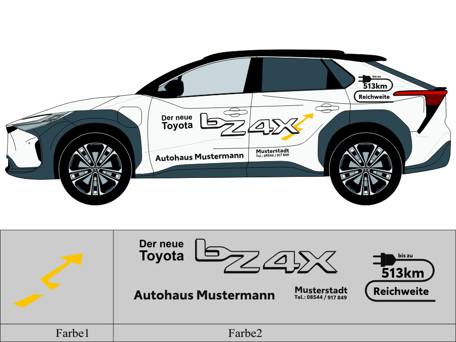 Die von uns verwendete Folie ist eine weiche PVC Folie für kurz bis mittelfristige Beschriftungen auf glatten und ebenen Untergründen ( ca. 2-4 Jahre)
