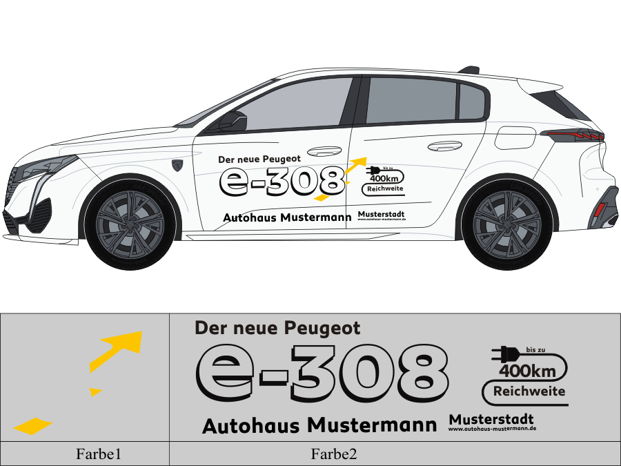 Die von uns verwendete Folie ist eine weiche PVC Folie für kurz bis mittelfristige Beschriftungen auf glatten und ebenen Untergründen ( ca. 2-4 Jahre)