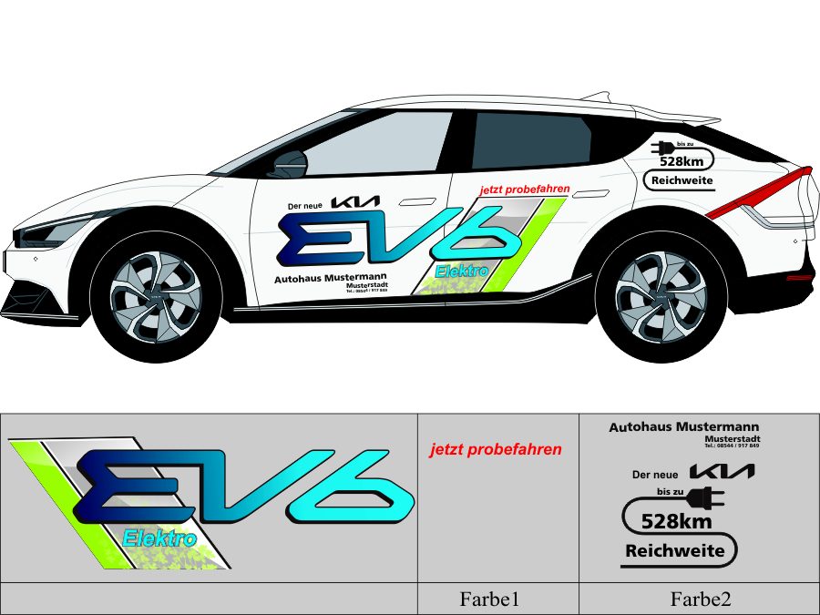 Die von uns verwendete Folie ist eine weiche PVC Folie für kurz bis mittelfristige Beschriftungen auf glatten und ebenen Untergründen ( ca. 2-4 Jahre)