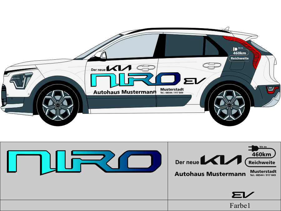 Die von uns verwendete Folie ist eine weiche PVC Folie für kurz bis mittelfristige Beschriftungen auf glatten und ebenen Untergründen ( ca. 2-4 Jahre)