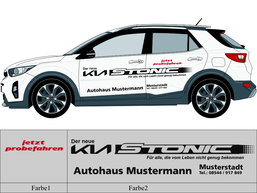 Die von uns verwendete Folie ist eine weiche PVC Folie für kurz bis mittelfristige Beschriftungen auf glatten und ebenen Untergründen ( ca. 2-4 Jahre)