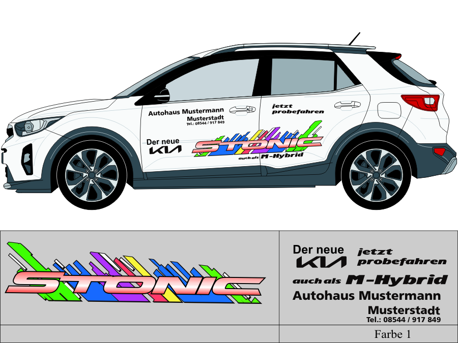 Die von uns verwendete Folie ist eine weiche PVC Folie für kurz bis mittelfristige Beschriftungen auf glatten und ebenen Untergründen ( ca. 2-4 Jahre)
