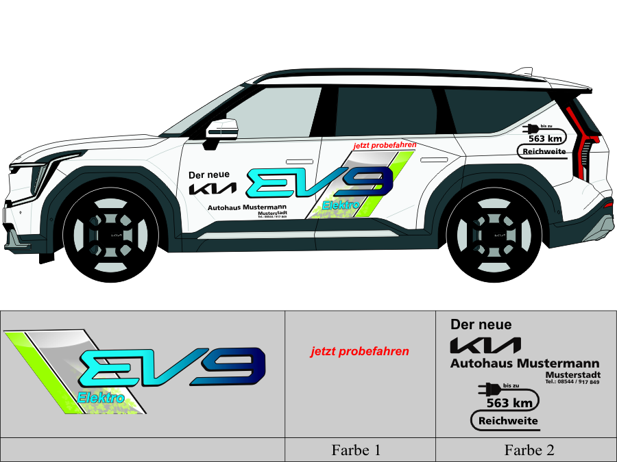 Die von uns verwendete Folie ist eine weiche PVC Folie für kurz bis mittelfristige Beschriftungen auf glatten und ebenen Untergründen ( ca. 2-4 Jahre)