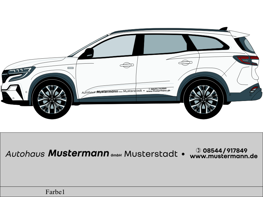 Die von uns verwendete Folie ist eine weiche PVC Folie für kurz bis mittelfristige Beschriftungen auf glatten und ebenen Untergründen ( ca. 2-4 Jahre)