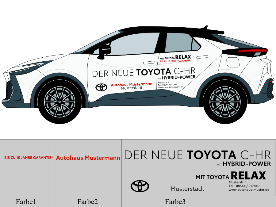 Die von uns verwendete Folie ist eine weiche PVC Folie für kurz bis mittelfristige Beschriftungen auf glatten und ebenen Untergründen ( ca. 2-4 Jahre)
