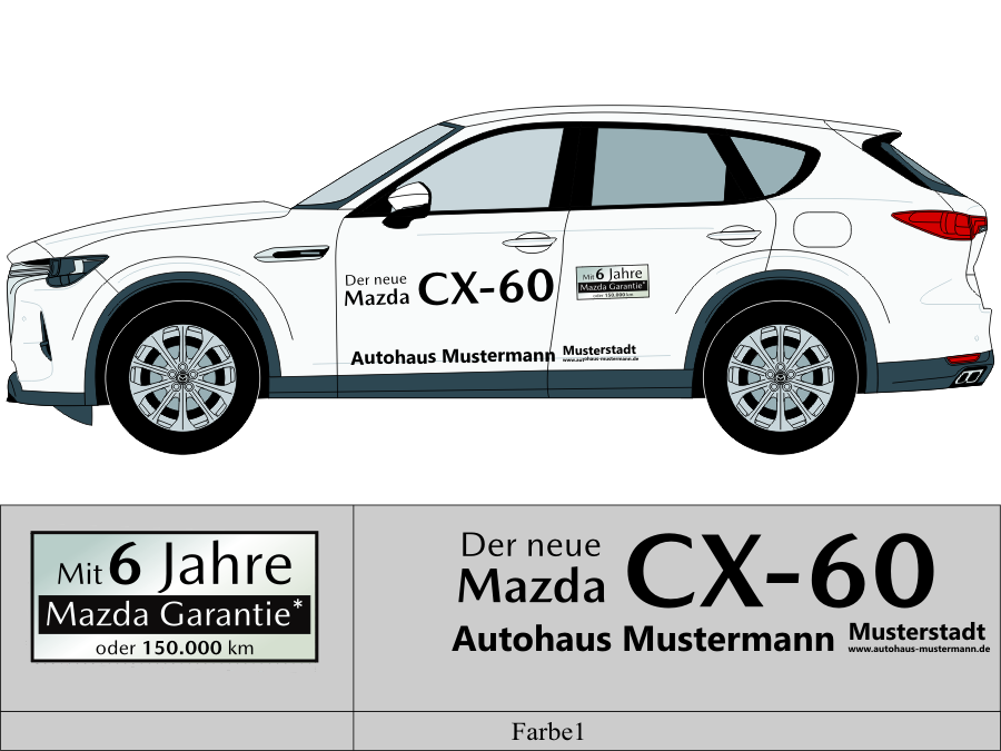Die von uns verwendete Folie ist eine weiche PVC Folie für kurz bis mittelfristige Beschriftungen auf glatten und ebenen Untergründen ( ca. 2-4 Jahre)