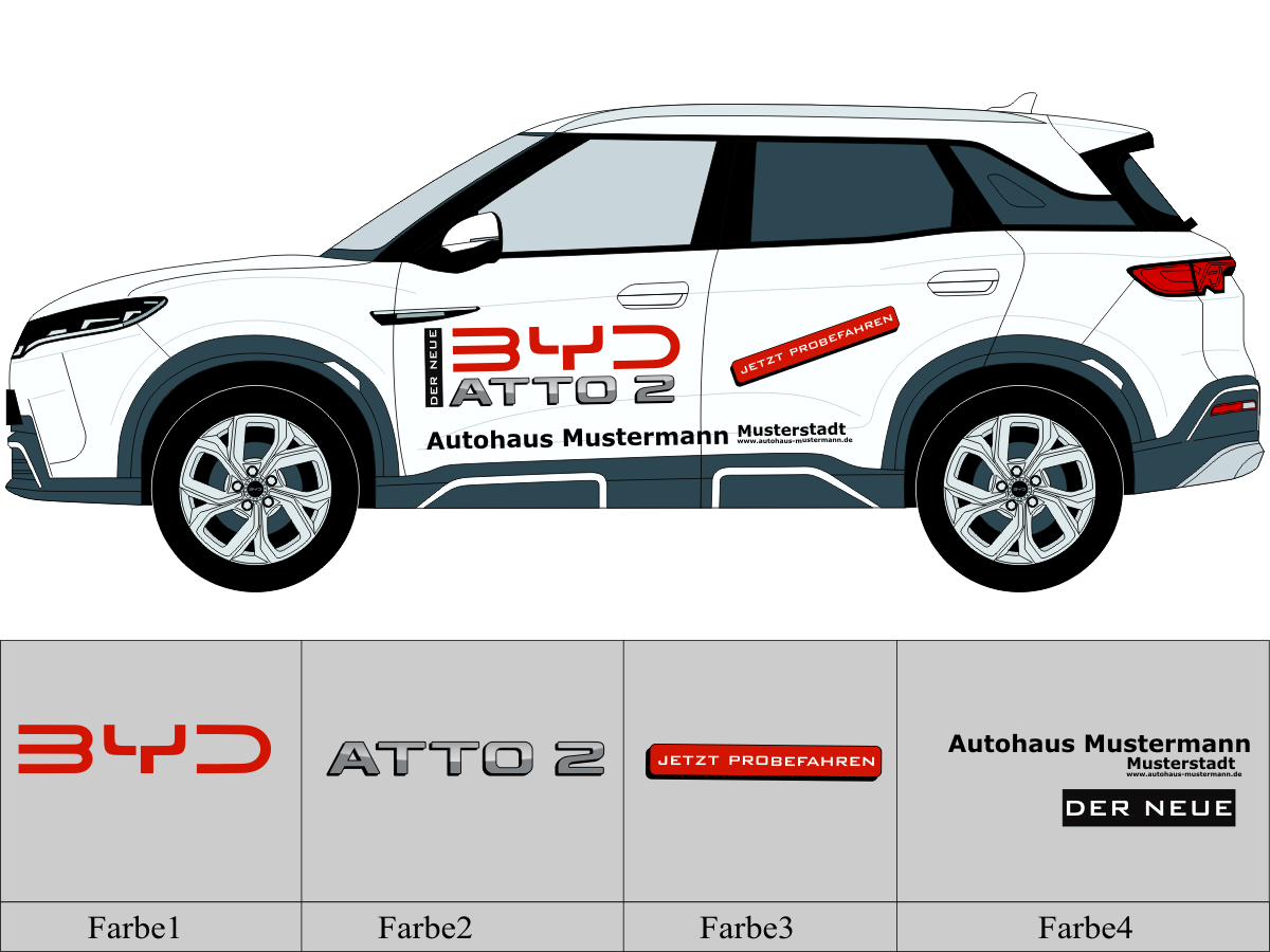 Die von uns verwendete Folie ist eine weiche PVC Folie für kurz bis mittelfristige Beschriftungen auf glatten und ebenen Untergründen ( ca. 2-4 Jahre)
