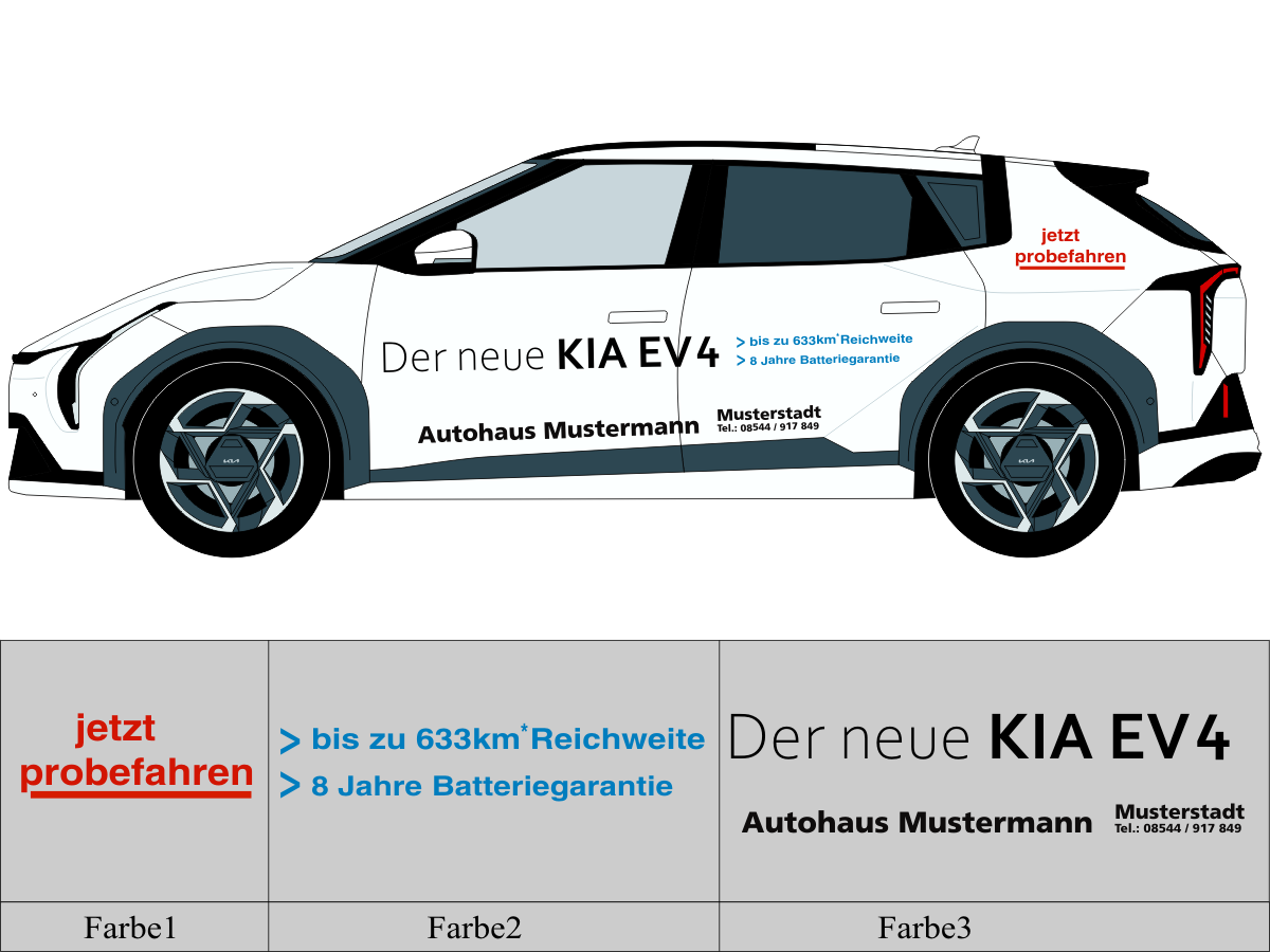 Die von uns verwendete Folie ist eine weiche PVC Folie für kurz bis mittelfristige Beschriftungen auf glatten und ebenen Untergründen ( ca. 2-4 Jahre)