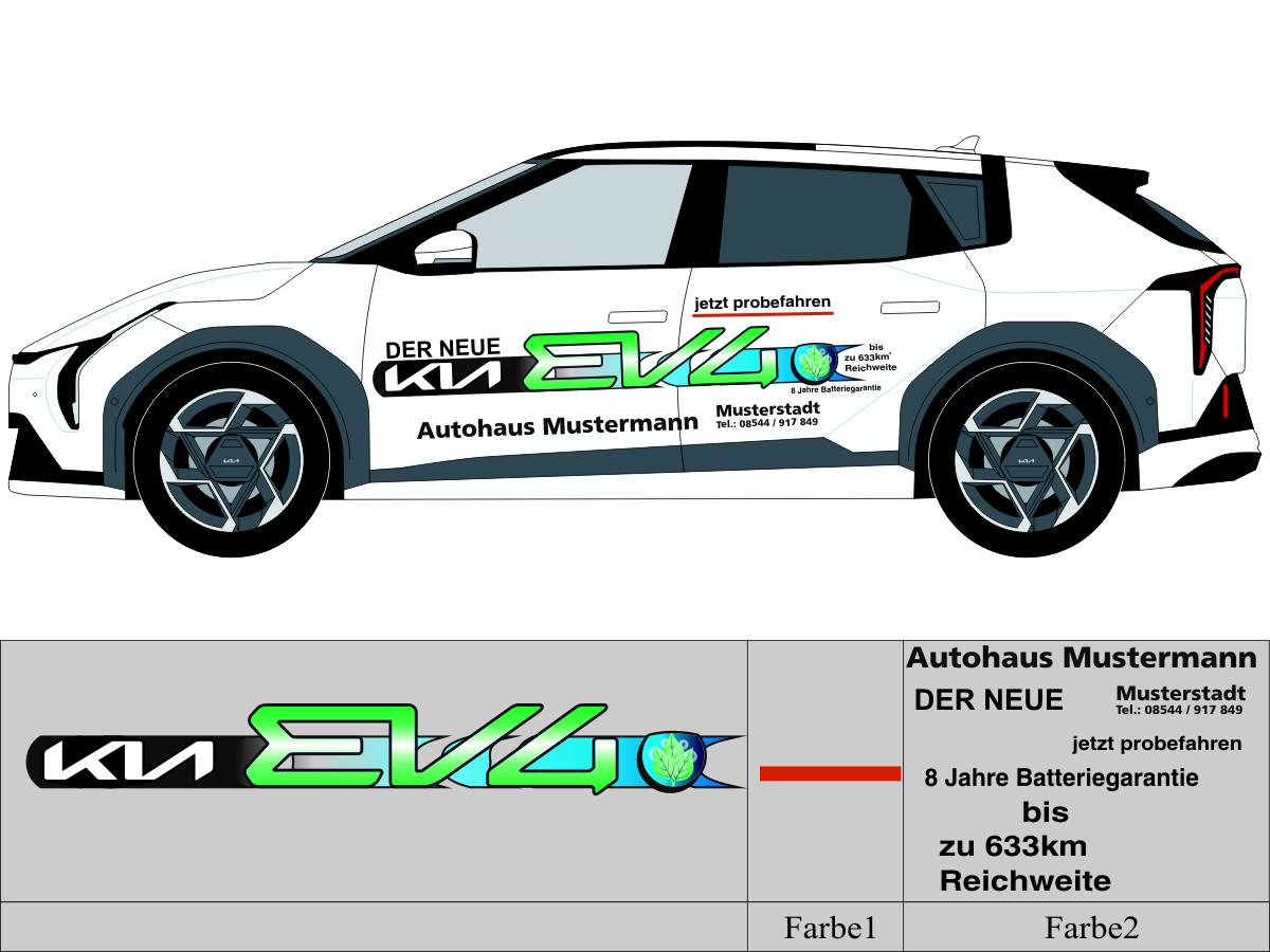 Die von uns verwendete Folie ist eine weiche PVC Folie für kurz bis mittelfristige Beschriftungen auf glatten und ebenen Untergründen ( ca. 2-4 Jahre)