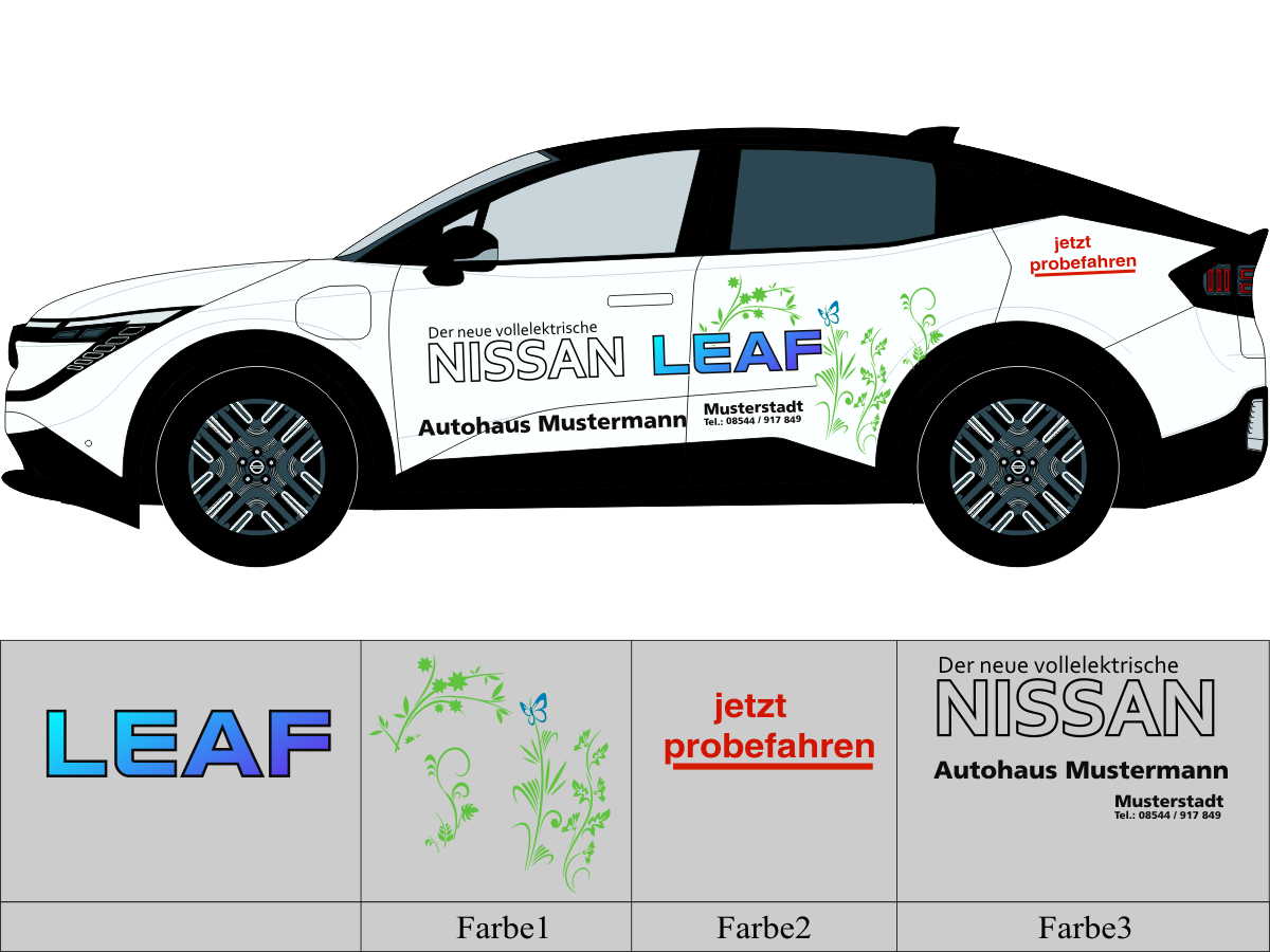 Die von uns verwendete Folie ist eine weiche PVC Folie für kurz bis mittelfristige Beschriftungen auf glatten und ebenen Untergründen ( ca. 2-4 Jahre)