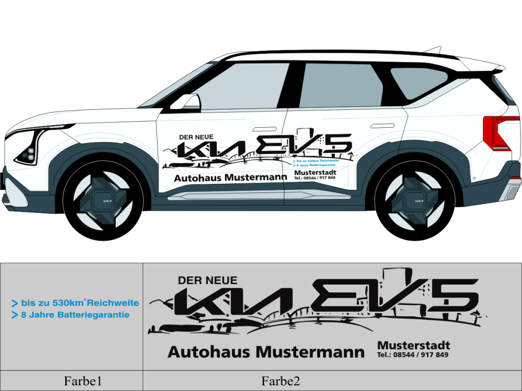 Die von uns verwendete Folie ist eine weiche PVC Folie für kurz bis mittelfristige Beschriftungen auf glatten und ebenen Untergründen ( ca. 2-4 Jahre)