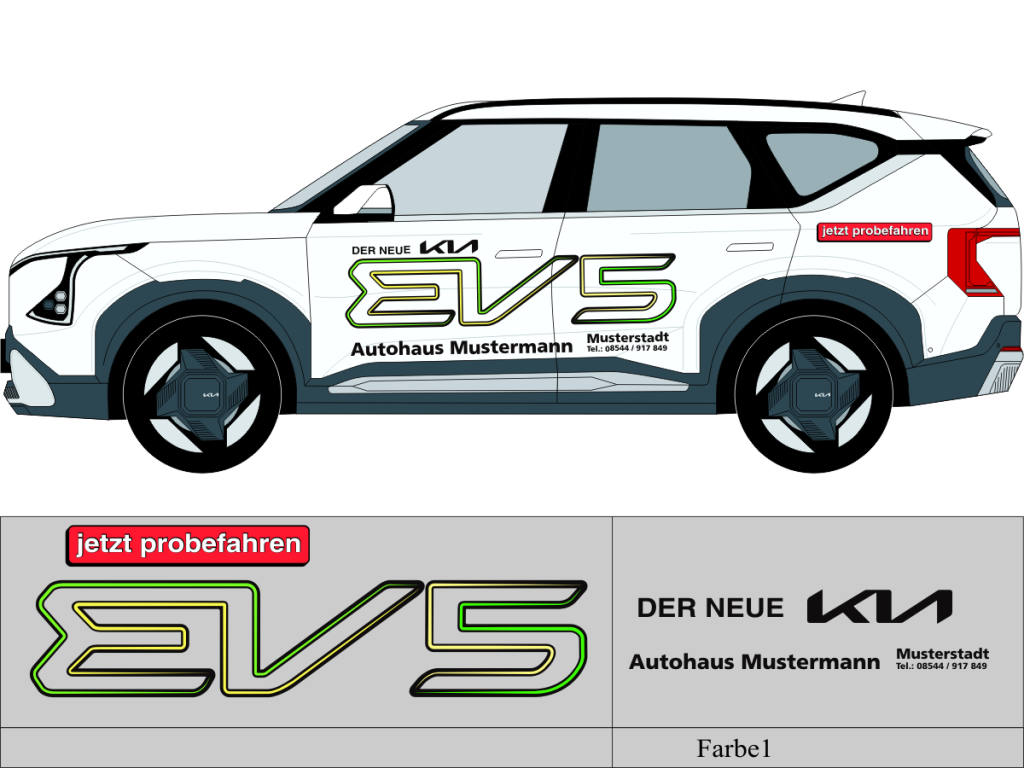 Die von uns verwendete Folie ist eine weiche PVC Folie für kurz bis mittelfristige Beschriftungen auf glatten und ebenen Untergründen ( ca. 2-4 Jahre)
