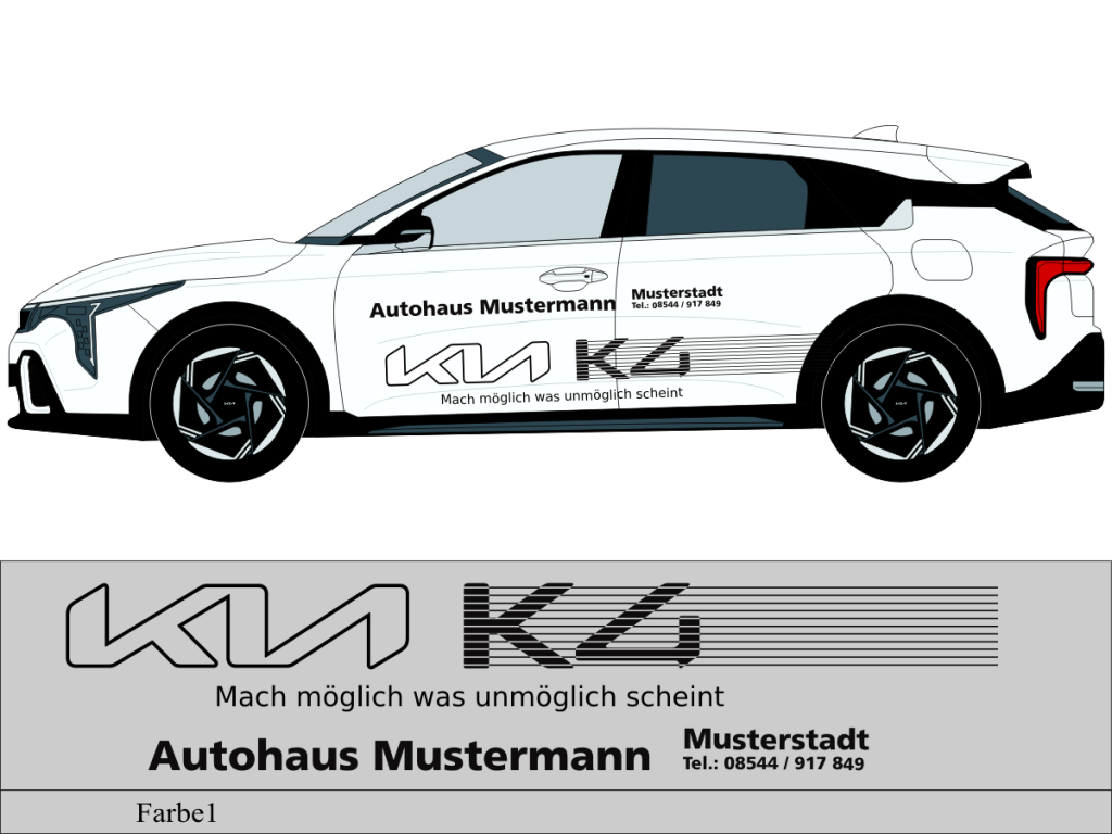 • Bei der Verwendung von einem eigenen Firmenschriftzug, benötigen wir diesen als importierbare Vektorgrafik alternativ in einer guten Auflösung hier fallen einmalig Digitalisierungskosten an. Ihr Schriftzug wird bis auf Wiederruf bei uns abgespeichert