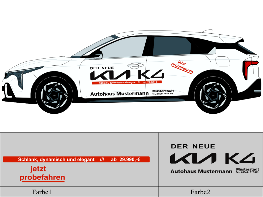 Die von uns verwendete Folie ist eine weiche PVC Folie für kurz bis mittelfristige Beschriftungen auf glatten und ebenen Untergründen ( ca. 2-4 Jahre)