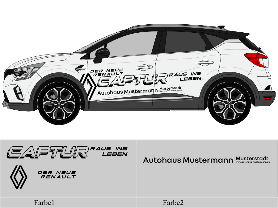 Die von uns verwendete Folie ist eine weiche PVC Folie für kurz bis mittelfristige Beschriftungen auf glatten und ebenen Untergründen ( ca. 2-4 Jahre)