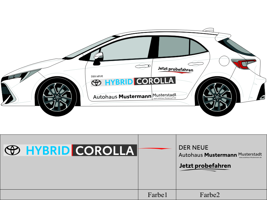 Die von uns verwendete Folie ist eine weiche PVC Folie für kurz bis mittelfristige Beschriftungen auf glatten und ebenen Untergründen ( ca. 2-4 Jahre)