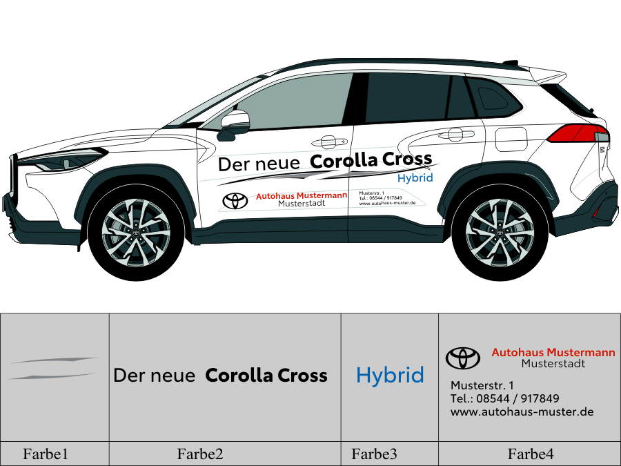 Die von uns verwendete Folie ist eine weiche PVC Folie für kurz bis mittelfristige Beschriftungen auf glatten und ebenen Untergründen ( ca. 2-4 Jahre)
