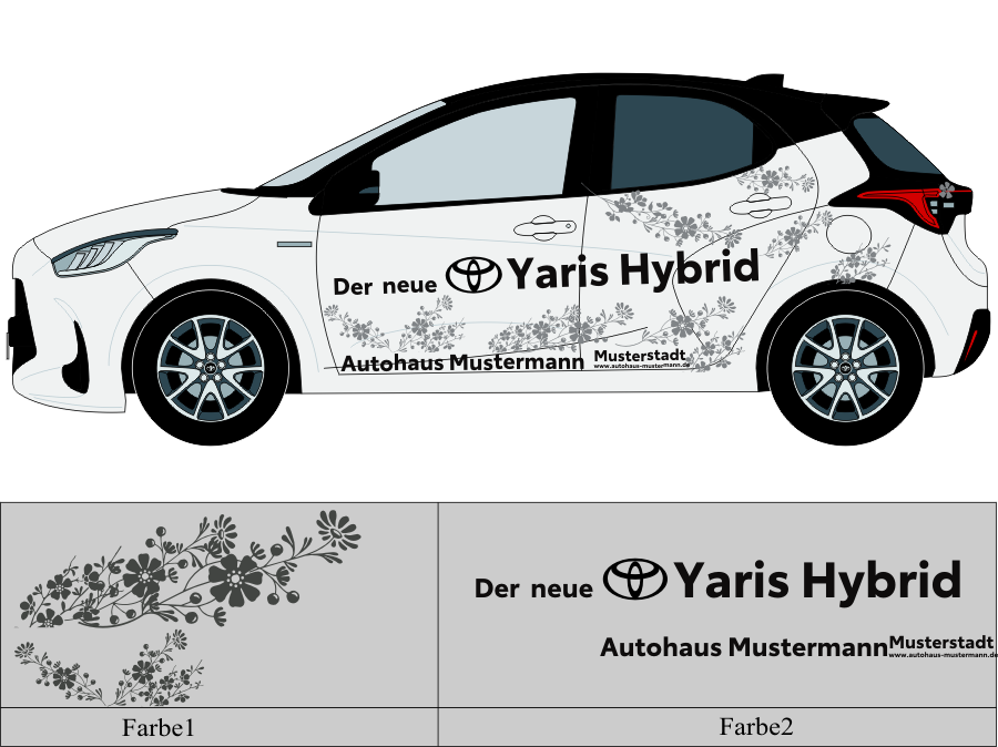 Die von uns verwendete Folie ist eine weiche PVC Folie für kurz bis mittelfristige Beschriftungen auf glatten und ebenen Untergründen ( ca. 2-4 Jahre)