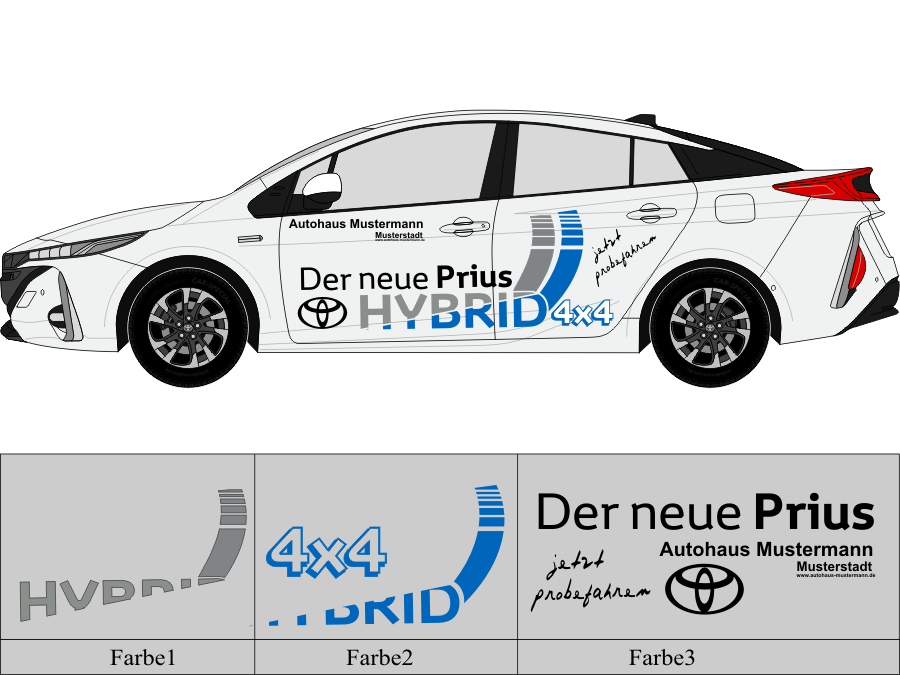 Die von uns verwendete Folie ist eine weiche PVC Folie für kurz bis mittelfristige Beschriftungen auf glatten und ebenen Untergründen ( ca. 2-4 Jahre)