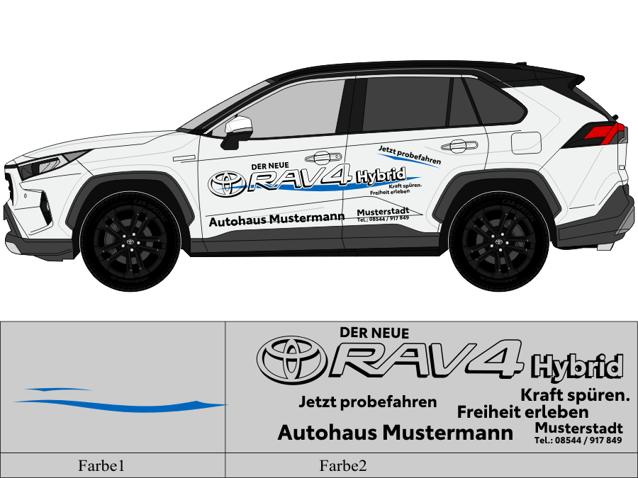 Die von uns verwendete Folie ist eine weiche PVC Folie für kurz bis mittelfristige Beschriftungen auf glatten und ebenen Untergründen ( ca. 2-4 Jahre)