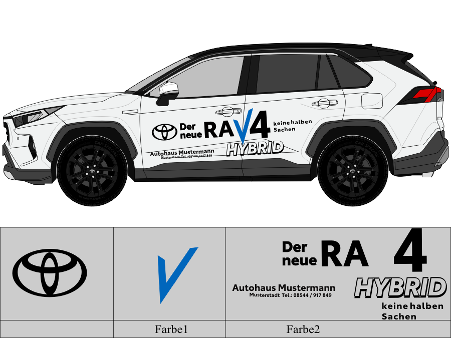 Die von uns verwendete Folie ist eine weiche PVC Folie für kurz bis mittelfristige Beschriftungen auf glatten und ebenen Untergründen ( ca. 2-4 Jahre)