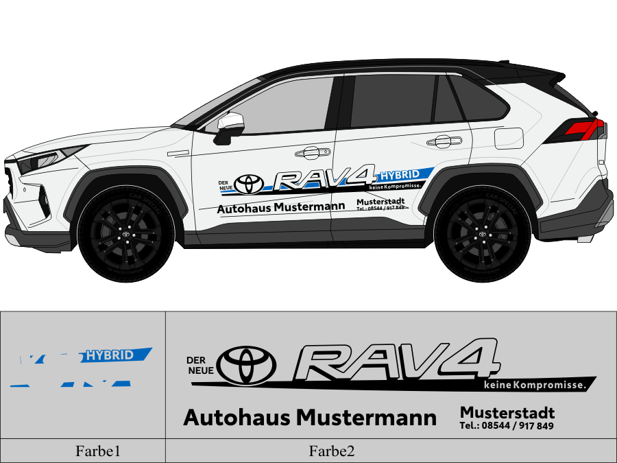 Die von uns verwendete Folie ist eine weiche PVC Folie für kurz bis mittelfristige Beschriftungen auf glatten und ebenen Untergründen ( ca. 2-4 Jahre)