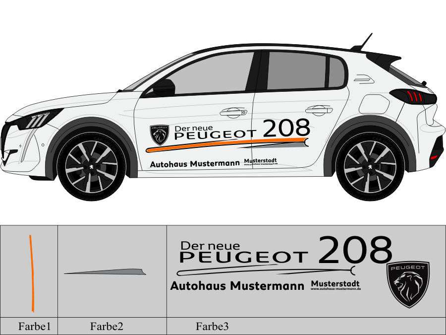 Die von uns verwendete Folie ist eine weiche PVC Folie für kurz bis mittelfristige Beschriftungen auf glatten und ebenen Untergründen ( ca. 2-4 Jahre)