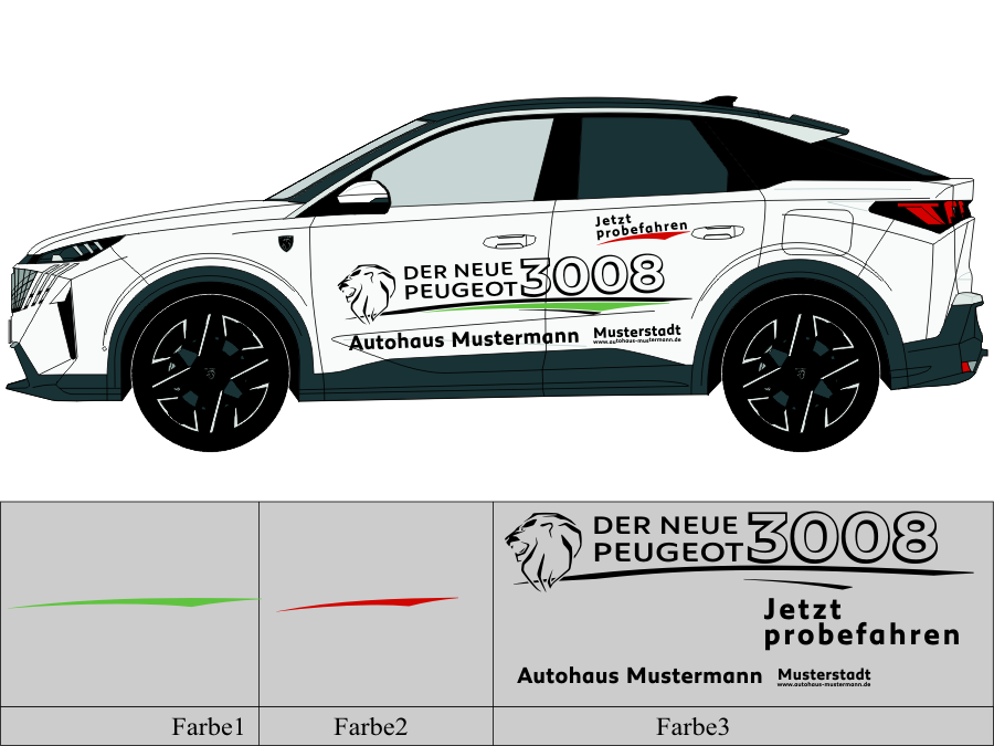 Die von uns verwendete Folie ist eine weiche PVC Folie für kurz bis mittelfristige Beschriftungen auf glatten und ebenen Untergründen ( ca. 2-4 Jahre)