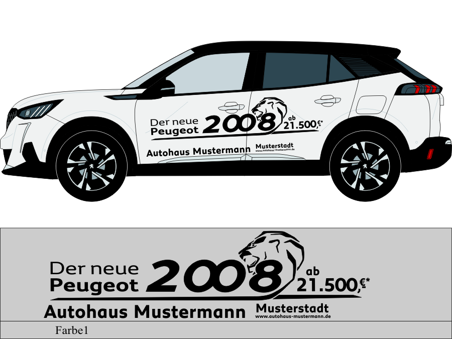Die von uns verwendete Folie ist eine weiche PVC Folie für kurz bis mittelfristige Beschriftungen auf glatten und ebenen Untergründen ( ca. 2-4 Jahre)