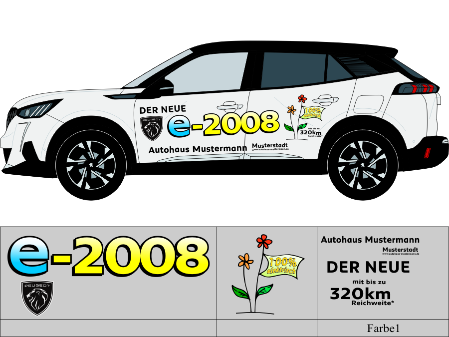 Die von uns verwendete Folie ist eine weiche PVC Folie für kurz bis mittelfristige Beschriftungen auf glatten und ebenen Untergründen ( ca. 2-4 Jahre)