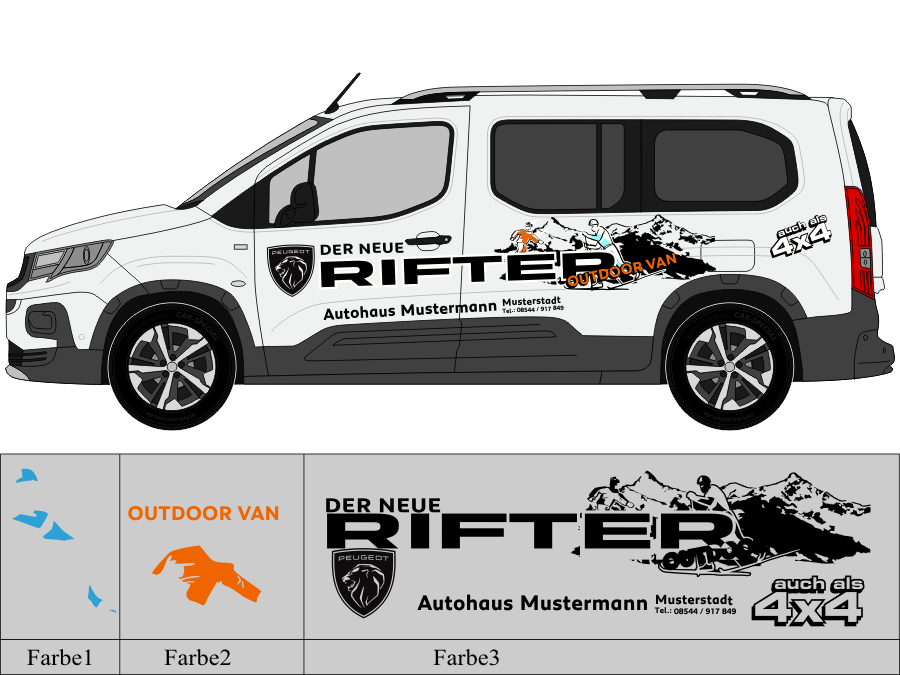Die von uns verwendete Folie ist eine weiche PVC Folie für kurz bis mittelfristige Beschriftungen auf glatten und ebenen Untergründen ( ca. 2-4 Jahre)