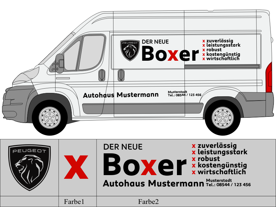 Die von uns verwendete Folie ist eine weiche PVC Folie für kurz bis mittelfristige Beschriftungen auf glatten und ebenen Untergründen ( ca. 2-4 Jahre)