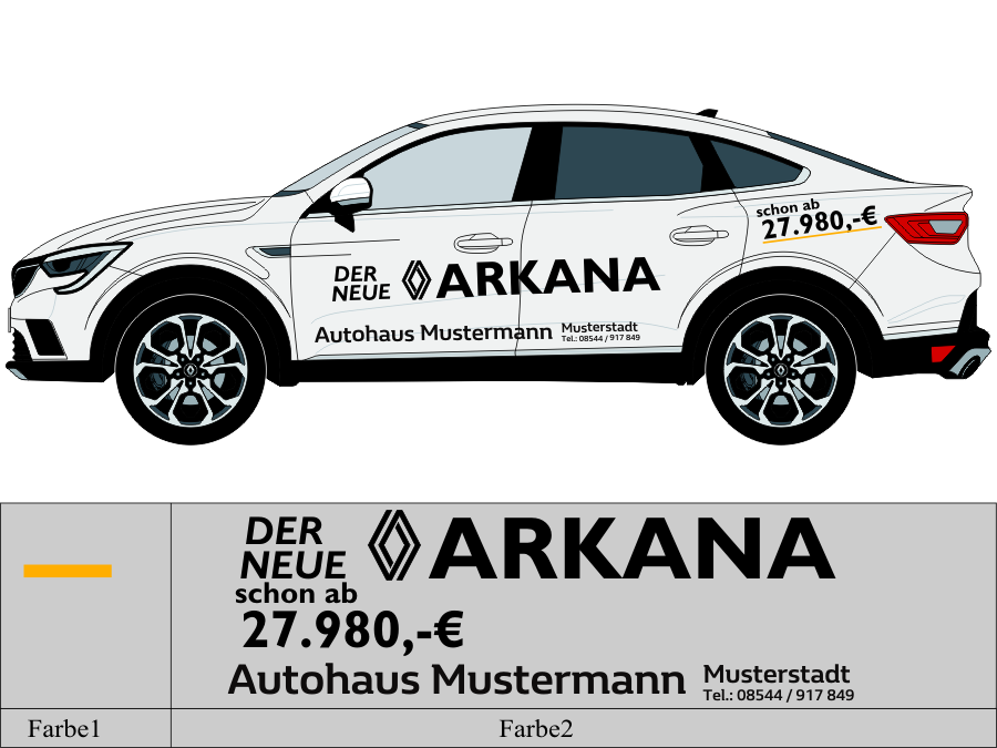 Die von uns verwendete Folie ist eine weiche PVC Folie für kurz bis mittelfristige Beschriftungen auf glatten und ebenen Untergründen ( ca. 2-4 Jahre)