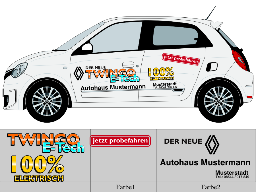 Die von uns verwendete Folie ist eine weiche PVC Folie für kurz bis mittelfristige Beschriftungen auf glatten und ebenen Untergründen ( ca. 2-4 Jahre)