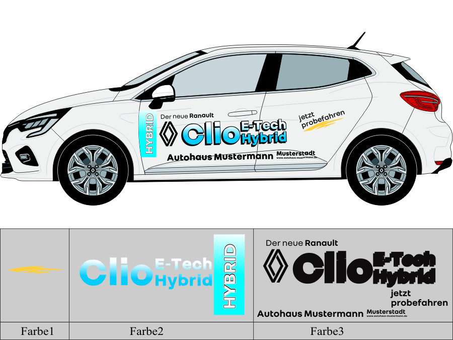 Die von uns verwendete Folie ist eine weiche PVC Folie für kurz bis mittelfristige Beschriftungen auf glatten und ebenen Untergründen ( ca. 2-4 Jahre)