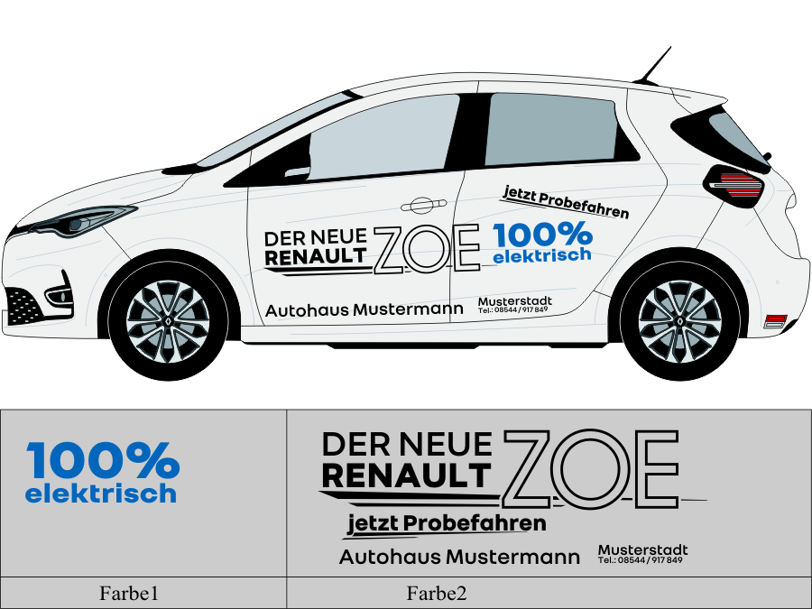 Die von uns verwendete Folie ist eine weiche PVC Folie für kurz bis mittelfristige Beschriftungen auf glatten und ebenen Untergründen ( ca. 2-4 Jahre)