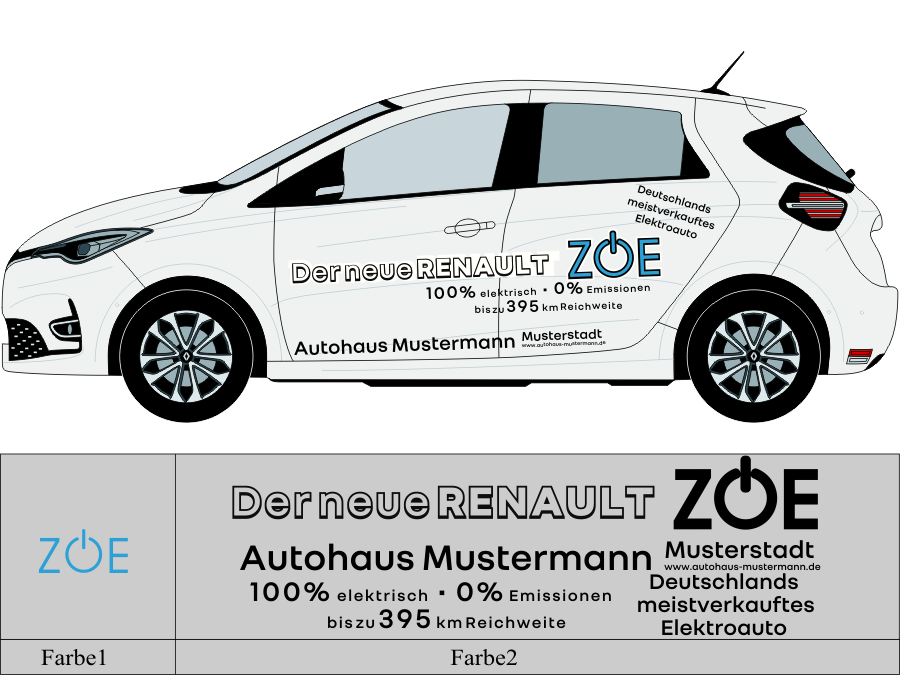 Die von uns verwendete Folie ist eine weiche PVC Folie für kurz bis mittelfristige Beschriftungen auf glatten und ebenen Untergründen ( ca. 2-4 Jahre)