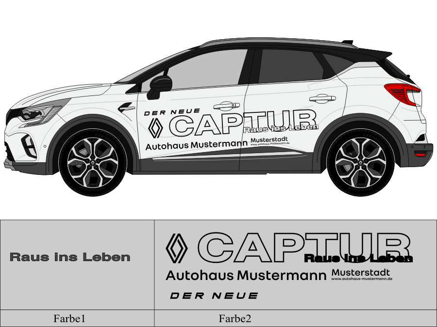 Die von uns verwendete Folie ist eine weiche PVC Folie für kurz bis mittelfristige Beschriftungen auf glatten und ebenen Untergründen ( ca. 2-4 Jahre)