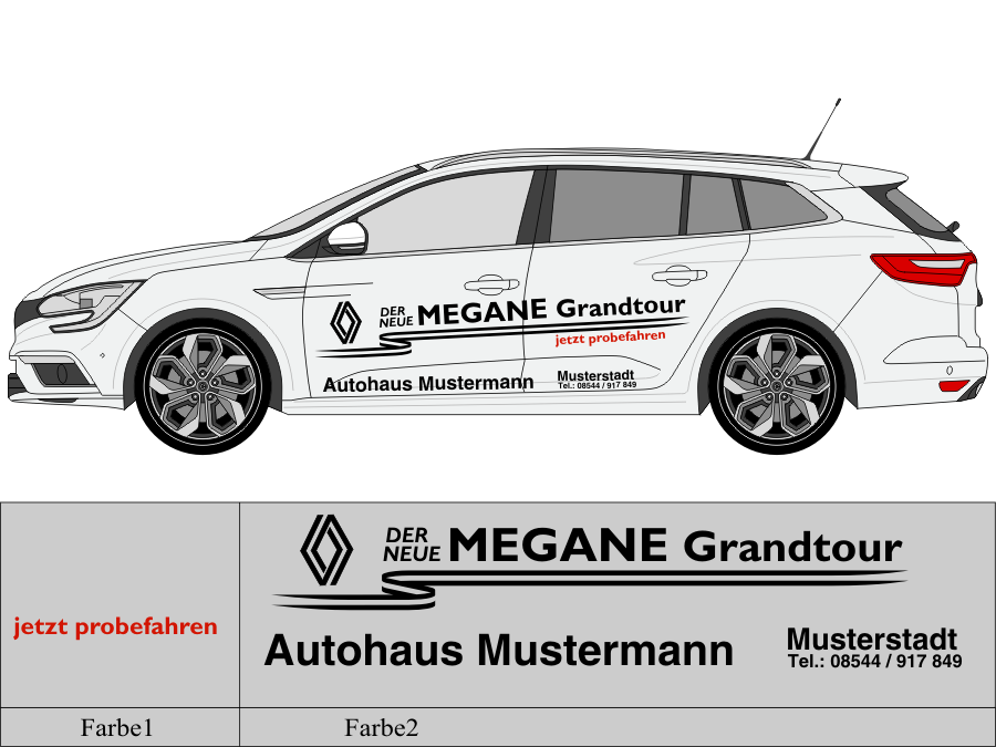 Die von uns verwendete Folie ist eine weiche PVC Folie für kurz bis mittelfristige Beschriftungen auf glatten und ebenen Untergründen ( ca. 2-4 Jahre)