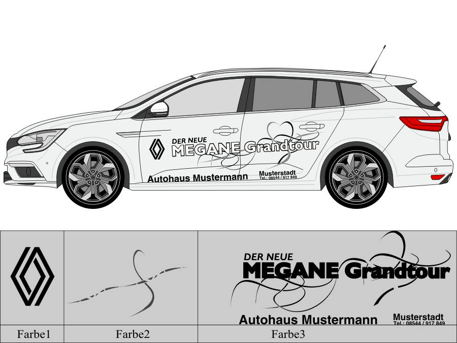 Die von uns verwendete Folie ist eine weiche PVC Folie für kurz bis mittelfristige Beschriftungen auf glatten und ebenen Untergründen ( ca. 2-4 Jahre)