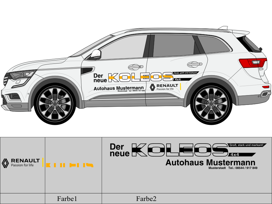 Die von uns verwendete Folie ist eine weiche PVC Folie für kurz bis mittelfristige Beschriftungen auf glatten und ebenen Untergründen ( ca. 2-4 Jahre)