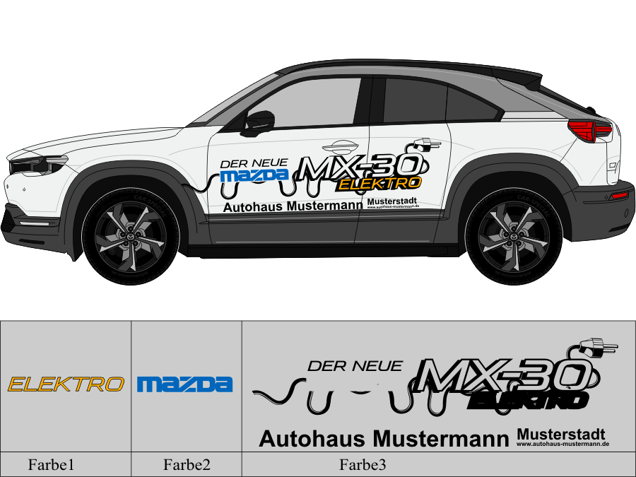 Die von uns verwendete Folie ist eine weiche PVC Folie für kurz bis mittelfristige Beschriftungen auf glatten und ebenen Untergründen ( ca. 2-4 Jahre)