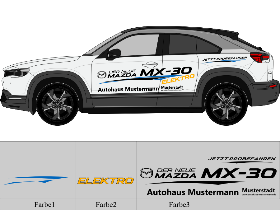 Die von uns verwendete Folie ist eine weiche PVC Folie für kurz bis mittelfristige Beschriftungen auf glatten und ebenen Untergründen ( ca. 2-4 Jahre)