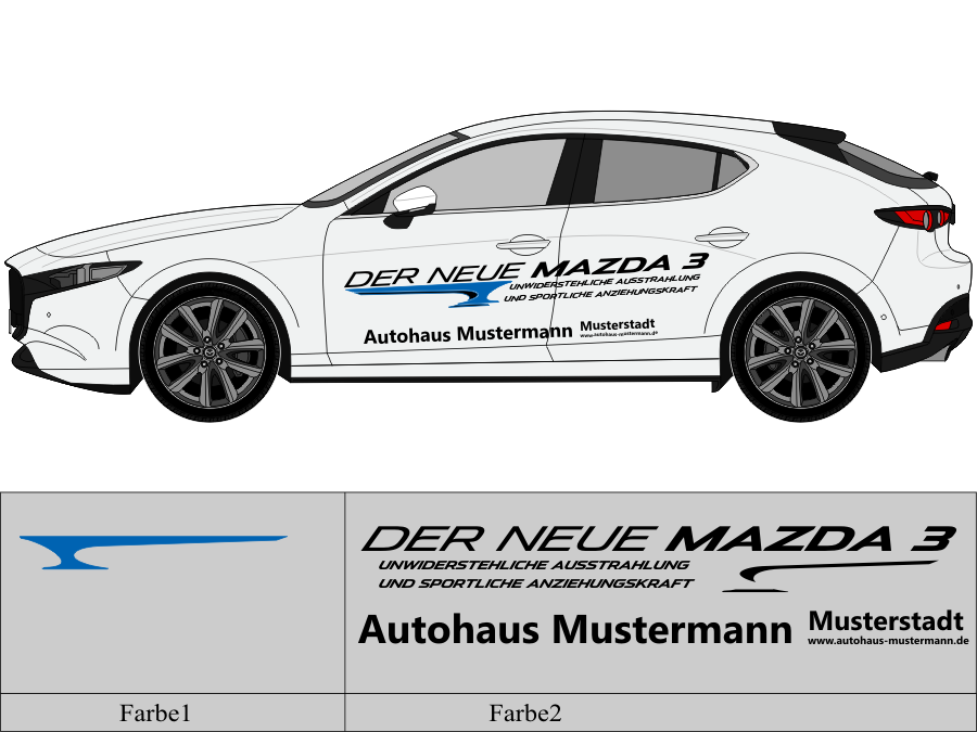 Die von uns verwendete Folie ist eine weiche PVC Folie für kurz bis mittelfristige Beschriftungen auf glatten und ebenen Untergründen ( ca. 2-4 Jahre)
