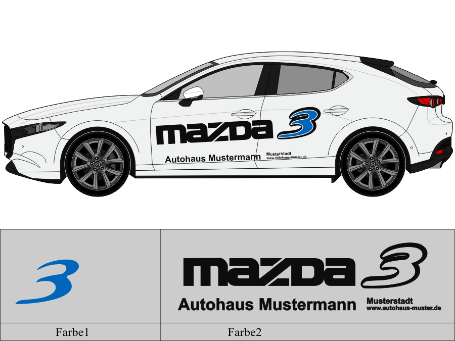 Die von uns verwendete Folie ist eine weiche PVC Folie für kurz bis mittelfristige Beschriftungen auf glatten und ebenen Untergründen ( ca. 2-4 Jahre)