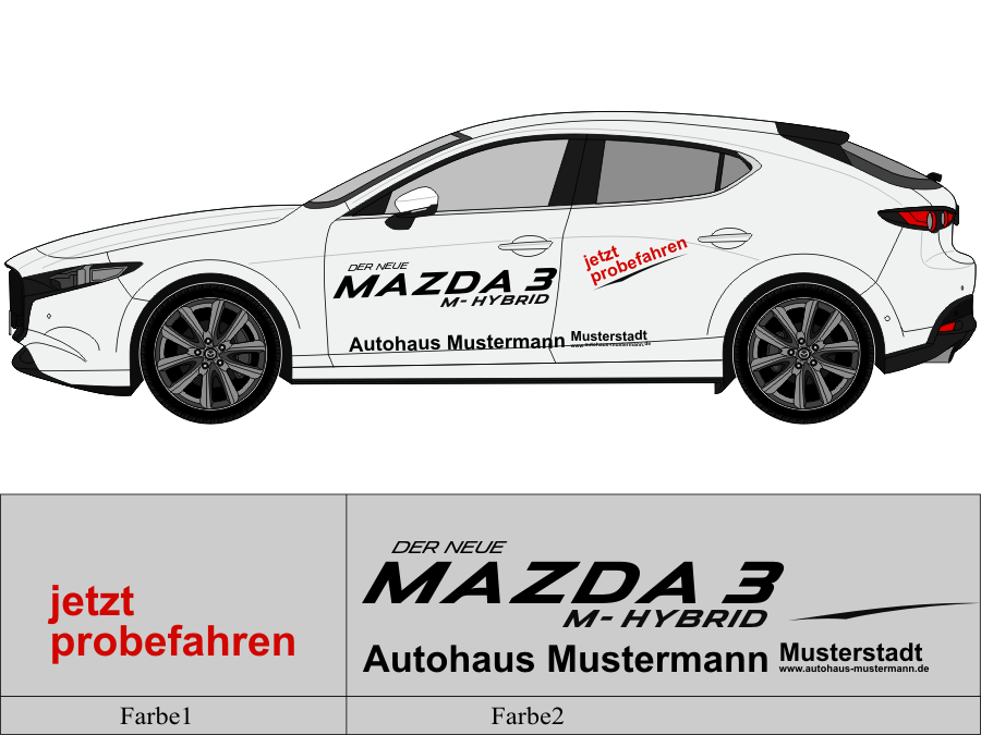 Die von uns verwendete Folie ist eine weiche PVC Folie für kurz bis mittelfristige Beschriftungen auf glatten und ebenen Untergründen ( ca. 2-4 Jahre)