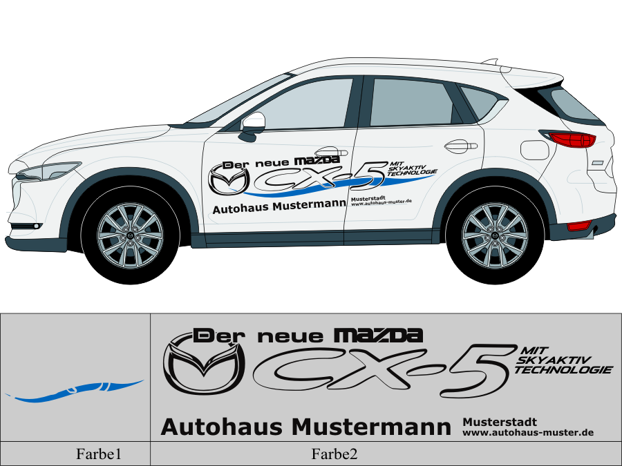 Die von uns verwendete Folie ist eine weiche PVC Folie für kurz bis mittelfristige Beschriftungen auf glatten und ebenen Untergründen ( ca. 2-4 Jahre)
