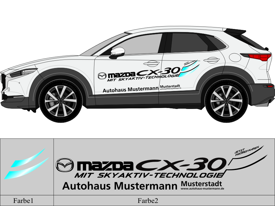Die von uns verwendete Folie ist eine weiche PVC Folie für kurz bis mittelfristige Beschriftungen auf glatten und ebenen Untergründen ( ca. 2-4 Jahre)