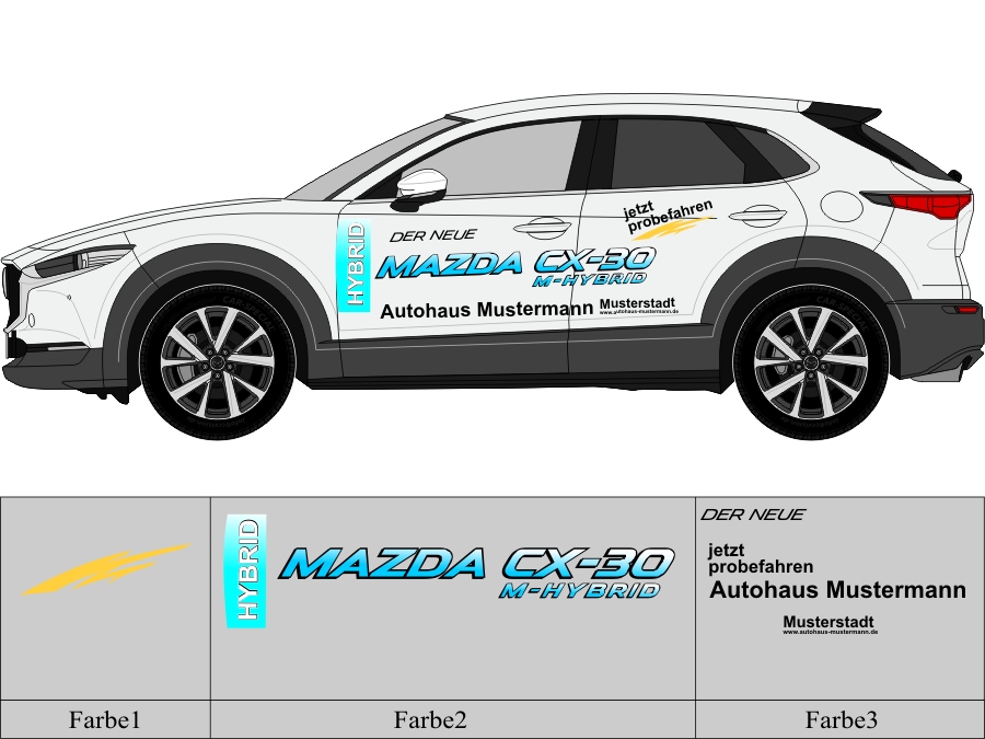 Die von uns verwendete Folie ist eine weiche PVC Folie für kurz bis mittelfristige Beschriftungen auf glatten und ebenen Untergründen ( ca. 2-4 Jahre)